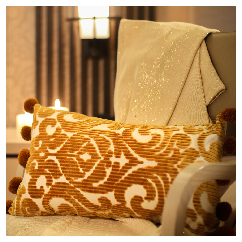 Gold Jacquard Lumbar Pillow