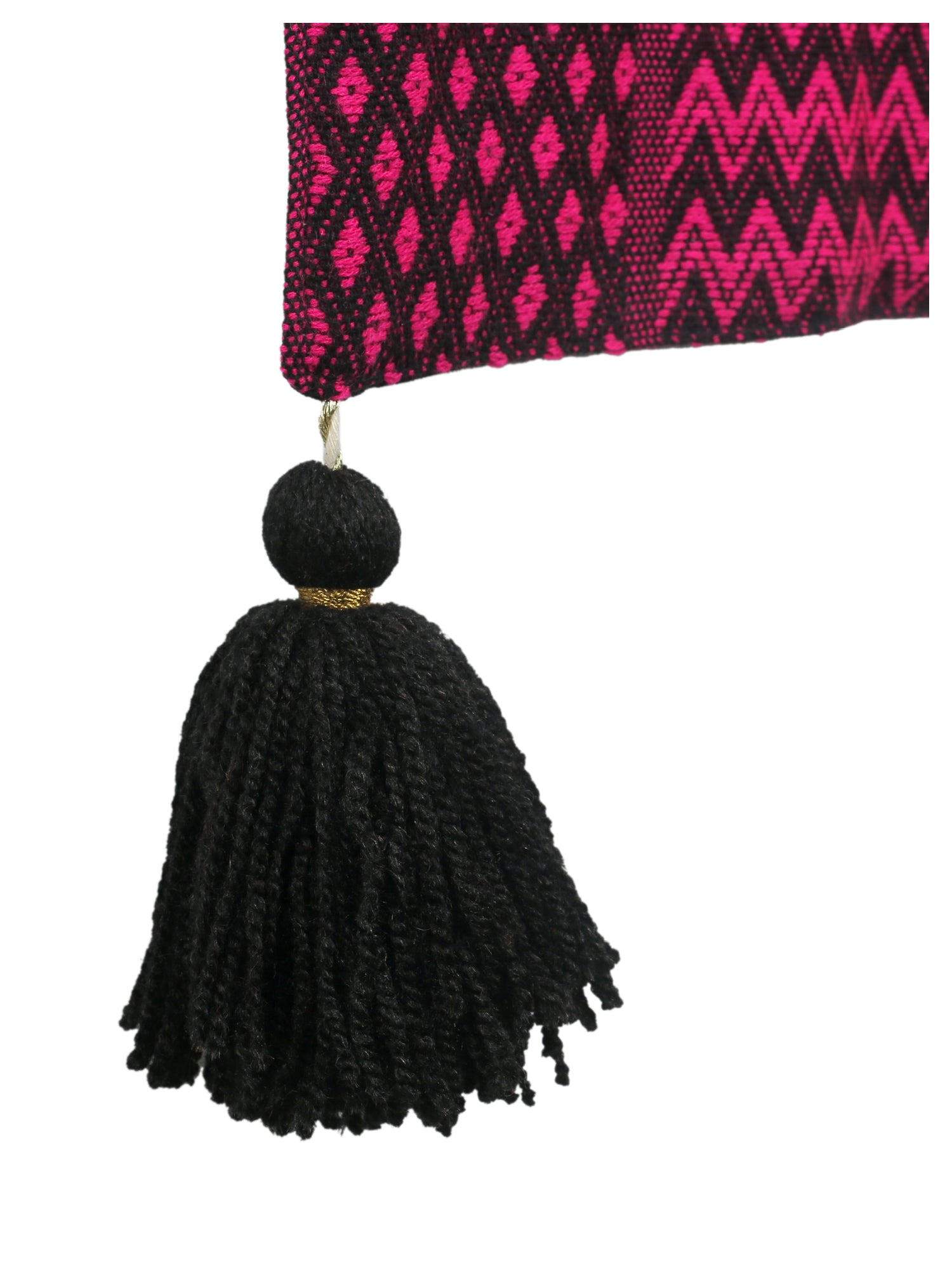 Featuring a strikingly beautiful black and fuchsia pink table runner in an intricate chevron patchwork pattern - accented with gorgeous tassel edges.