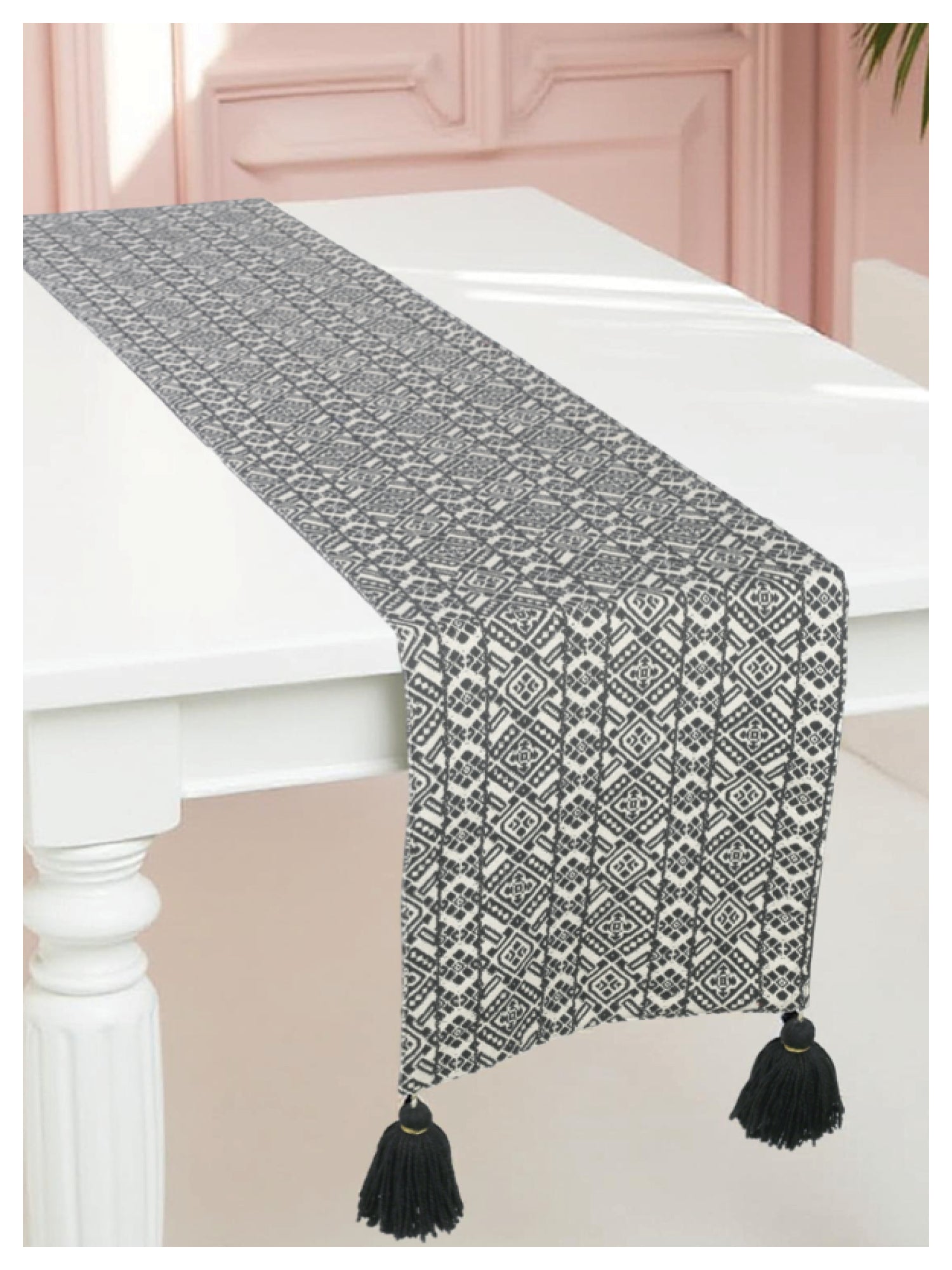 Black & White Table Runner with Tassels