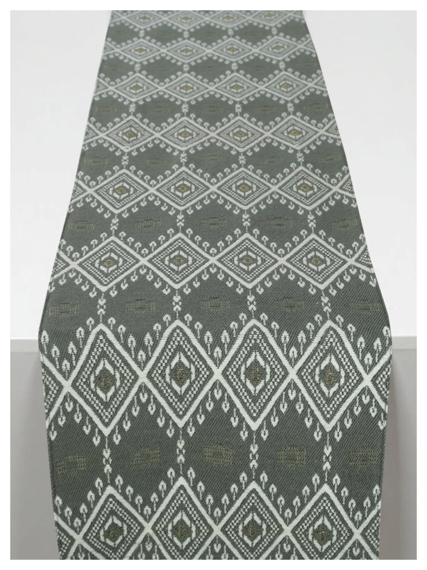 This striking table runner in a woven Aztec patterned jacquard - with gorgeous tassel and pom-pom accents is a perfect addition to the dining table for a statement making tablescape!