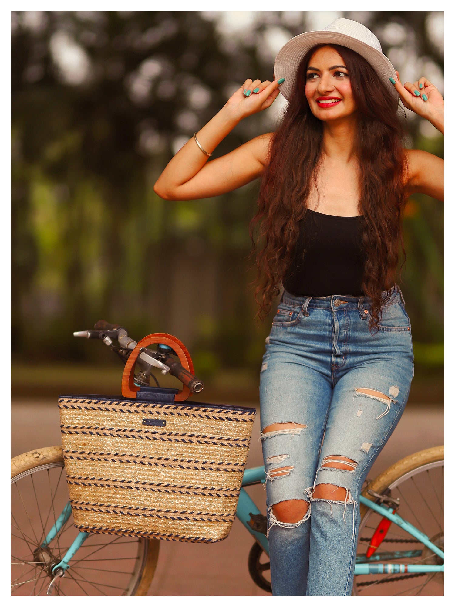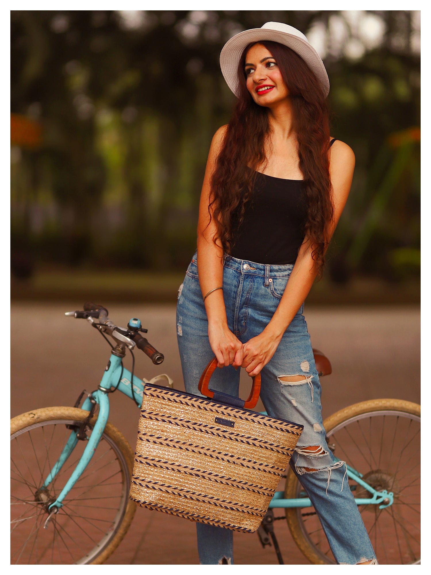 This lovely handcrafted bag is a perfect beach tote! Style it with your bikinis n resort wear. Our favourite tote to carry on holidays & day outings - pairs just as beautifully with ripped shorts as with breezy summer dresses.